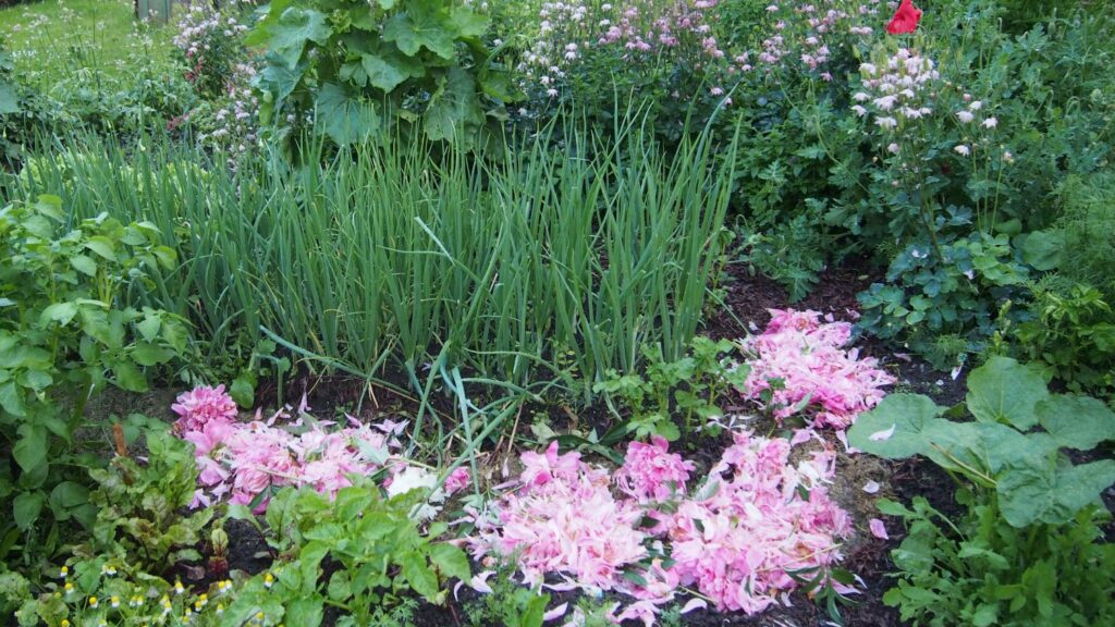 Ypatingai gražu būna, kai į tarplysvius nugula nužydėję bijūnai
